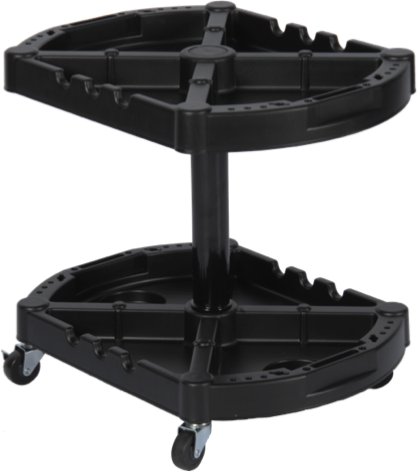 A compact and light-weight rolling rack with organized trays, dividers, holders and features for Automotive Professionals, Hobbyist and all user in their garages and shops.