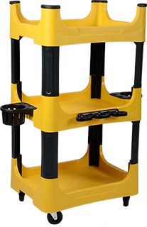 A compact and light-weight rolling rack with organized trays, dividers, holders and features for Automotive Professionals, Hobbyist and all user in their garages and shops.